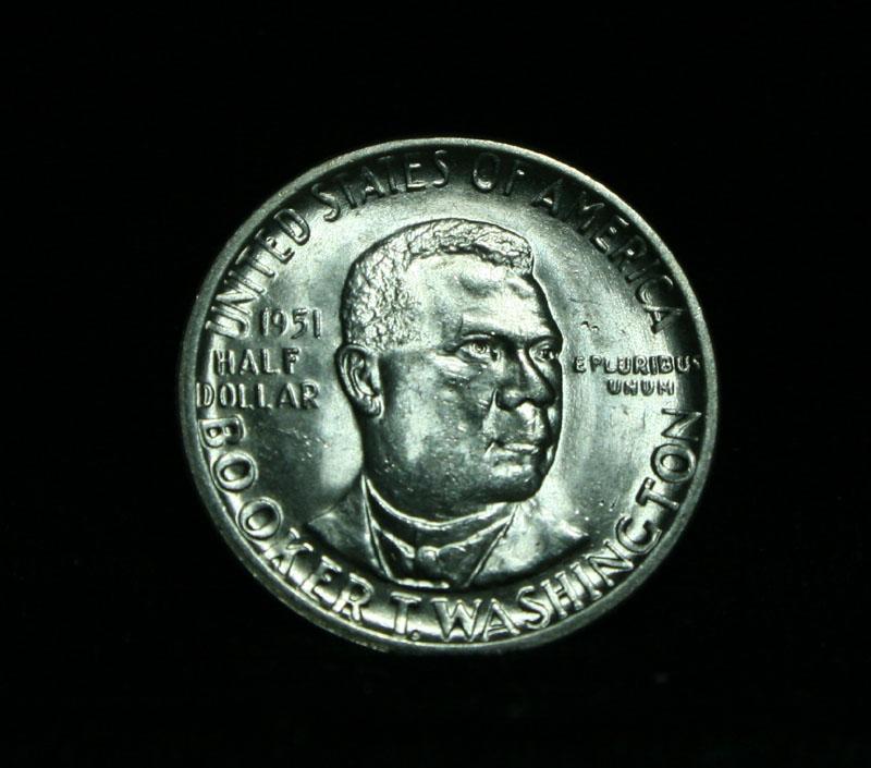 Much scarcer date, this the final year of the BTW commemorative. Blast white, and good eye appeal with blazing luster. This year is valued at almost 3x the inaugural year of the coin. Terrific all natural toning highlight this beautiful example. Superior eye appeal. When examining a Booker T. Washington commemorative look for wear on the high points, on the obverse that is Mr. Washington's right Cheek (from his perspective), and on the reverse the arches on the top building. The Wholesale Greysheet lists ms63 at $50. Estimated Value $60