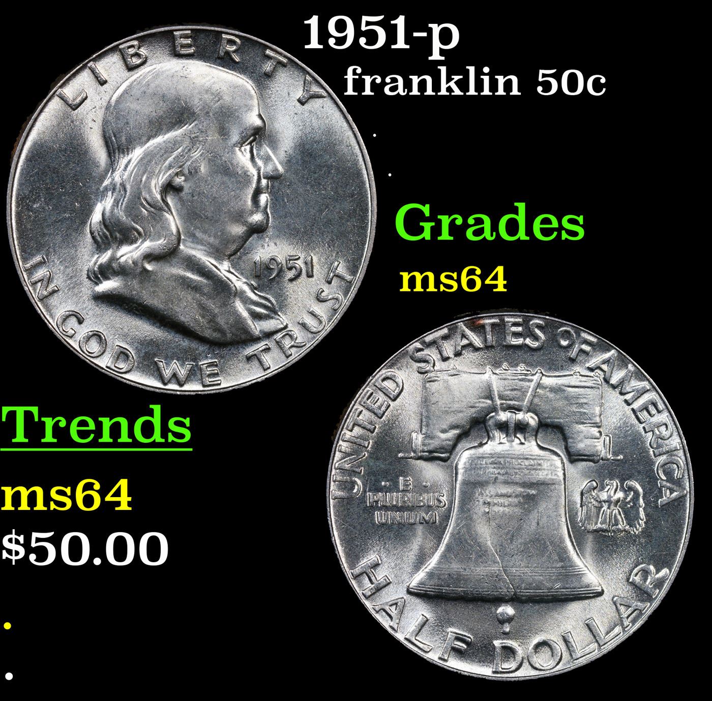 1951-p Franklin Half Dollar 50c Grades Choice Unc.