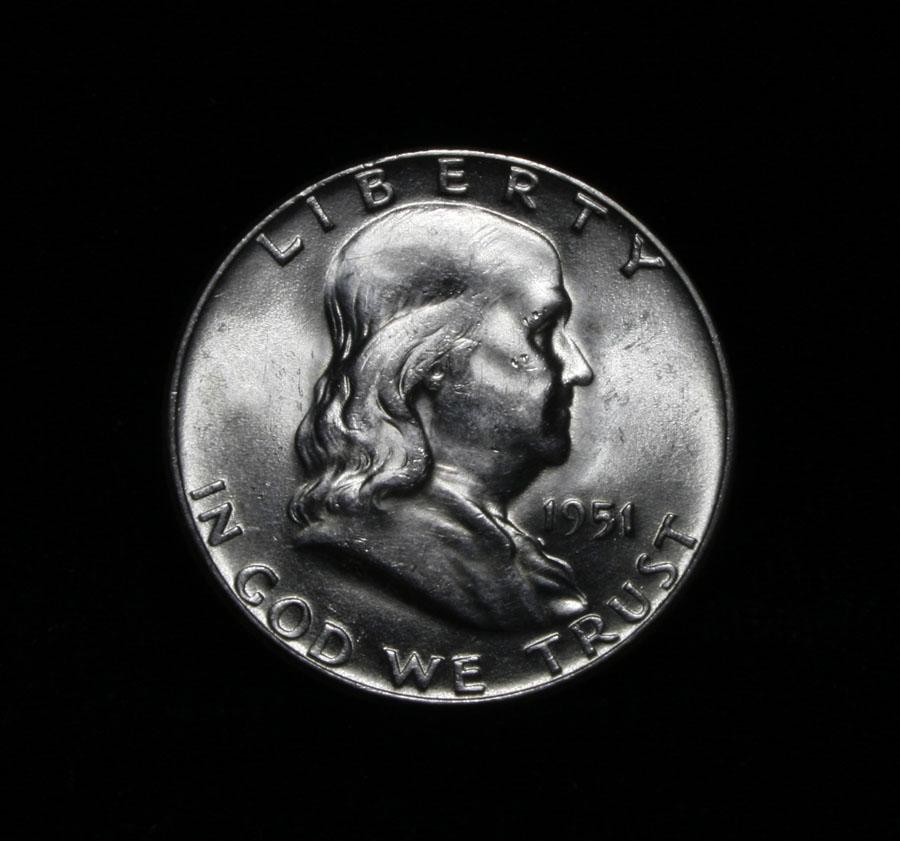 A very nice Franklin with beautiful Luster and a Good Strike. Coin World's Coin Values lists ms65 at $75 and The Wholesale Greysheet lists ms65 at $40. Estimated Value $55