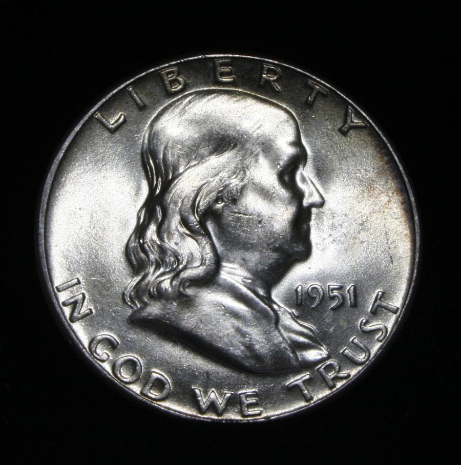 A very nice Franklin with beautiful Luster and a Good Strike. Coin World's Coin Values lists ms65 at $75 and The Wholesale Greysheet lists ms65 at $40. Estimated Value $55