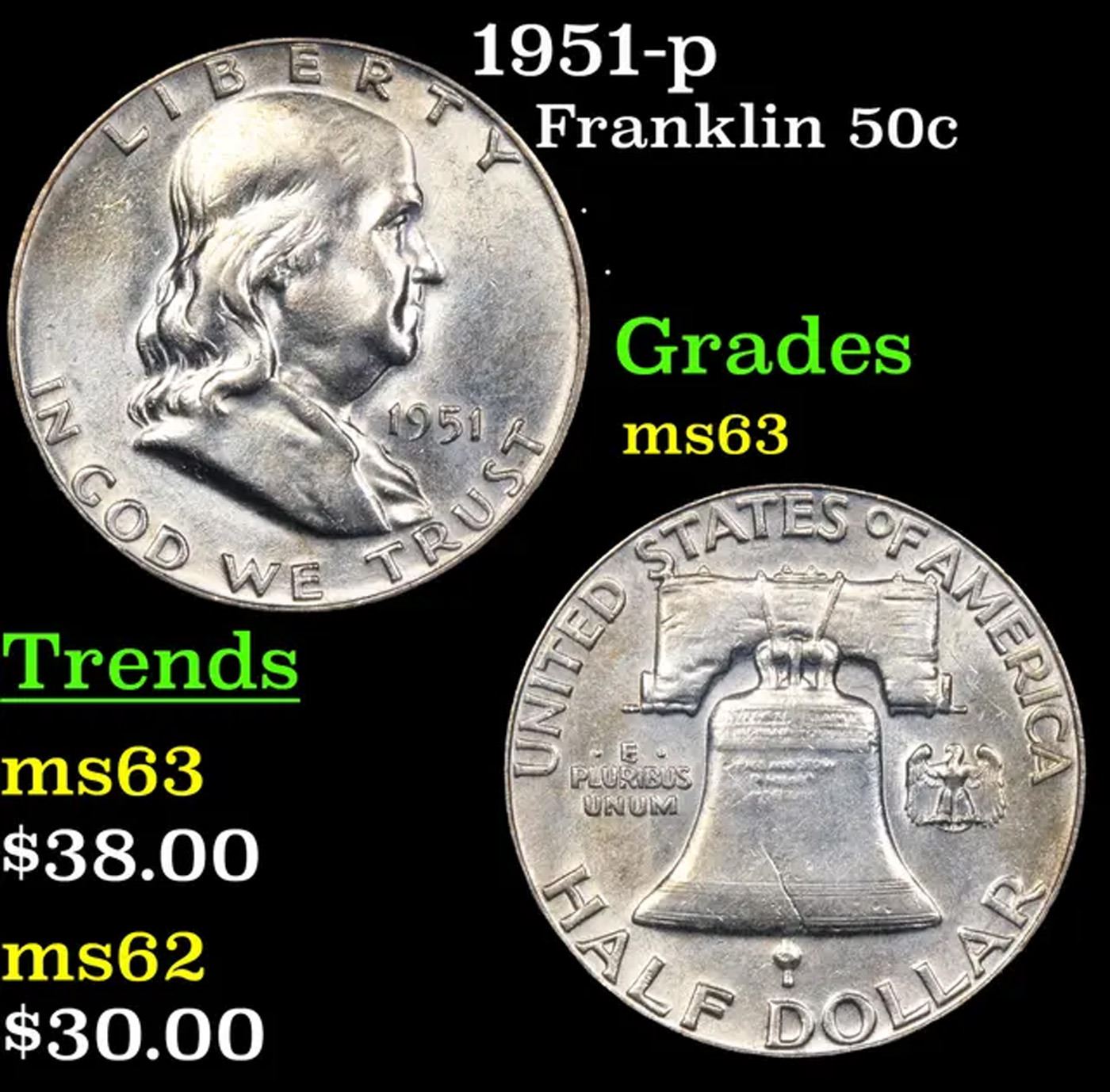1951-p Franklin Half Dollar 50c Grades Select Unc.