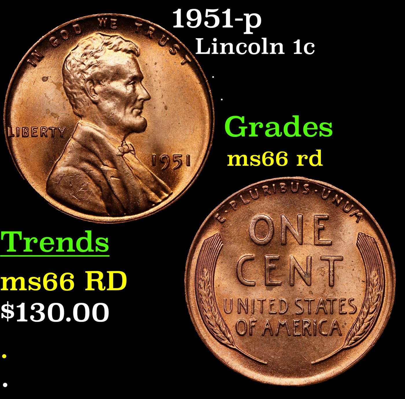 1951-p Lincoln Cent 1c Grades GEM+ Unc RD.