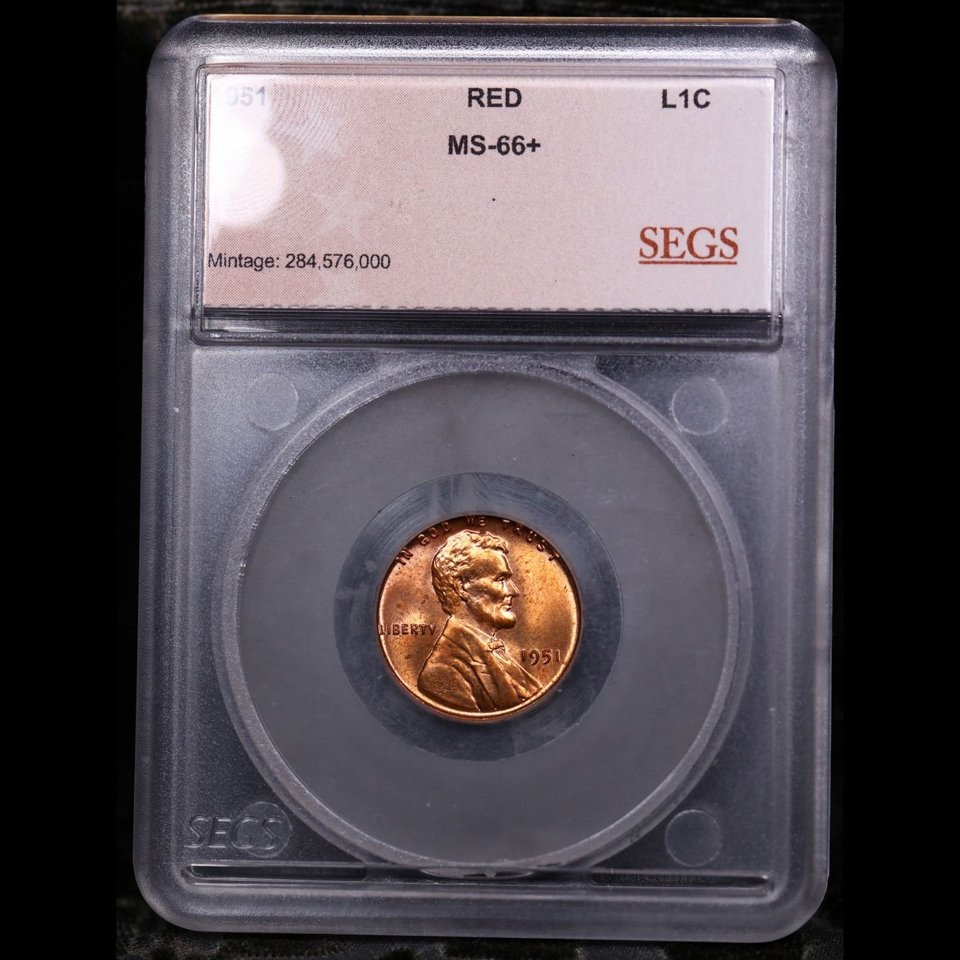 1951-p Near TOP POP! Lincoln Cent 1c Graded ms66+ rd BY SEGS. A Corey's Pick, Bid to Win, Don't let it get Away, you might not find its equal Coin