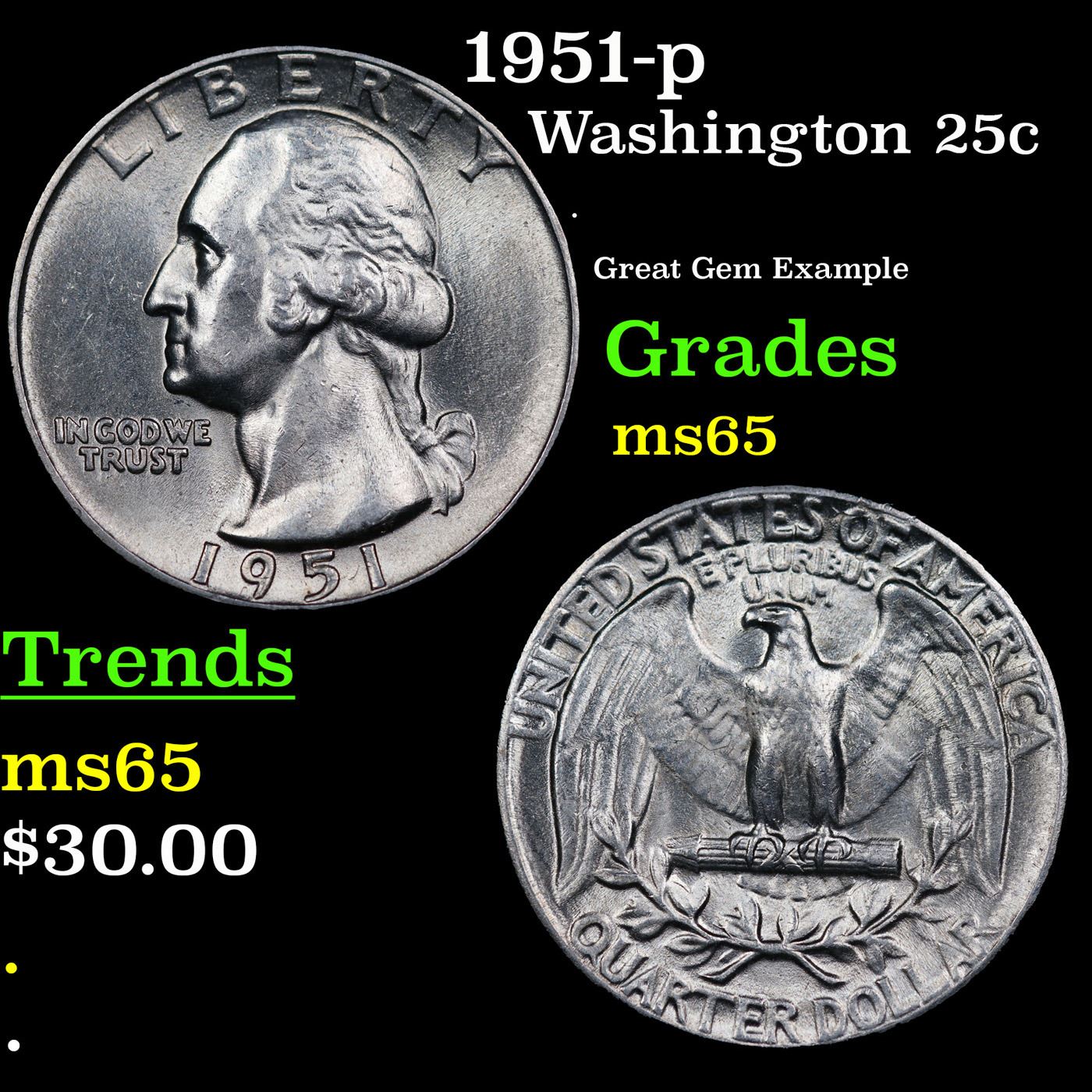 1951-p Washington Quarter 25c Grades GEM Unc.