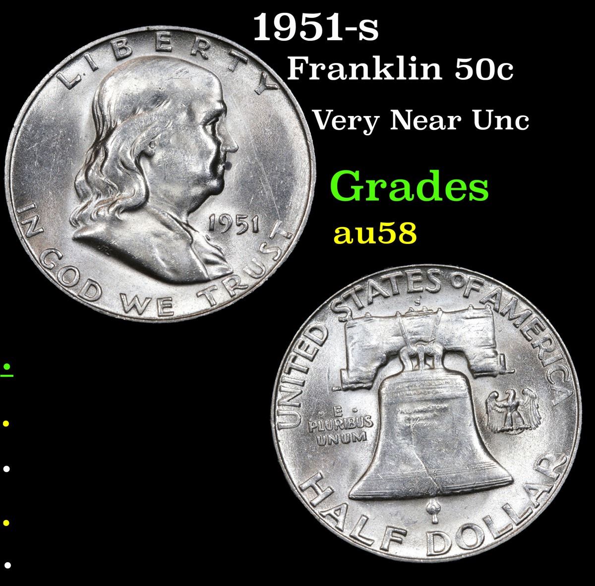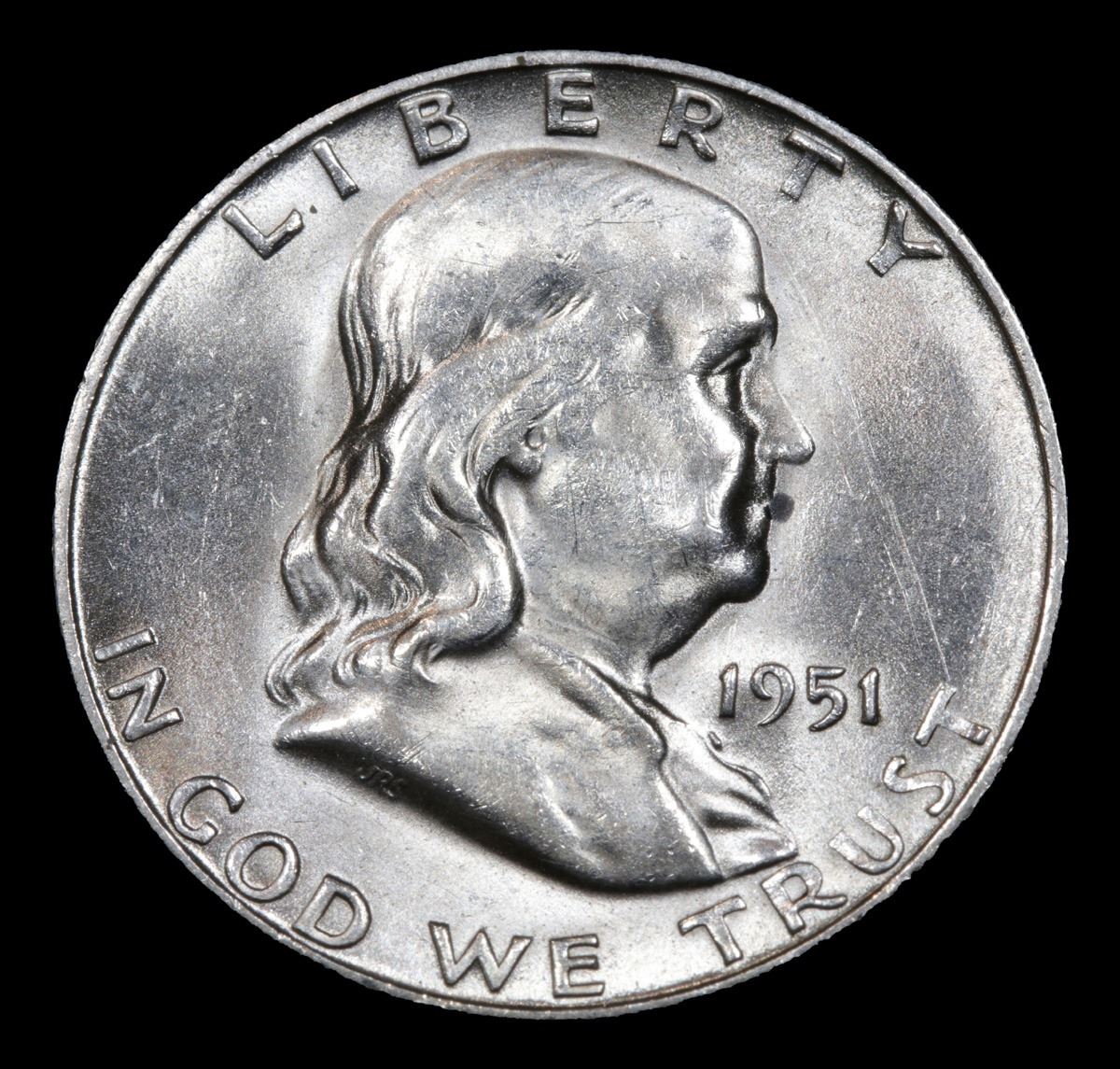1951-s . Very Near Unc Franklin Half Dollar 50c Grades Choice AU/BU Slider.