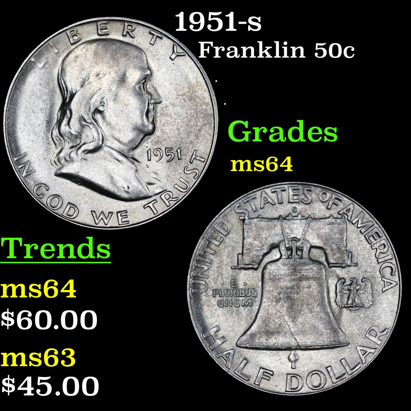 1951-s Franklin Half Dollar 50c Grades Choice Unc.
