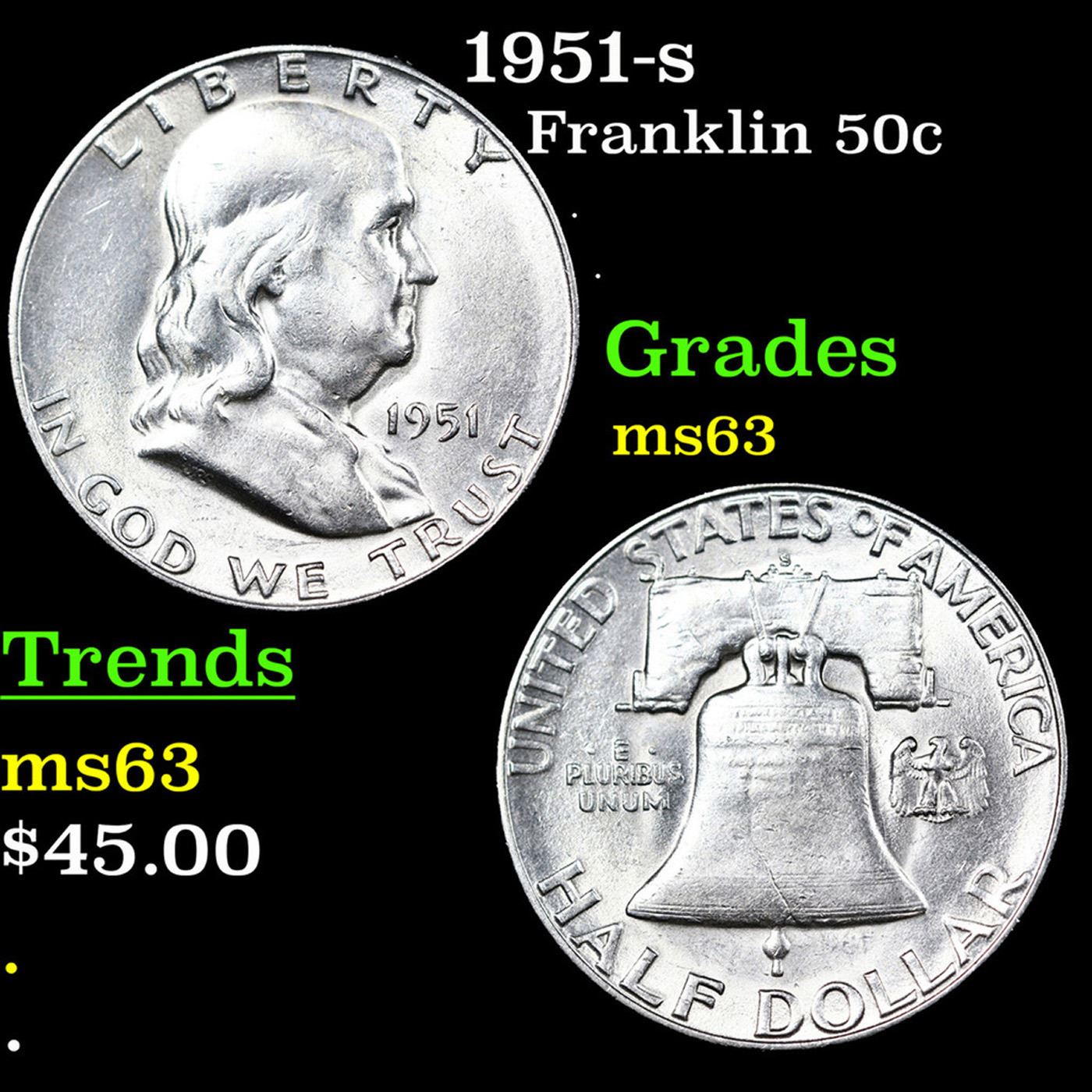 1951-s Franklin Half Dollar 50c Grades Select Unc.