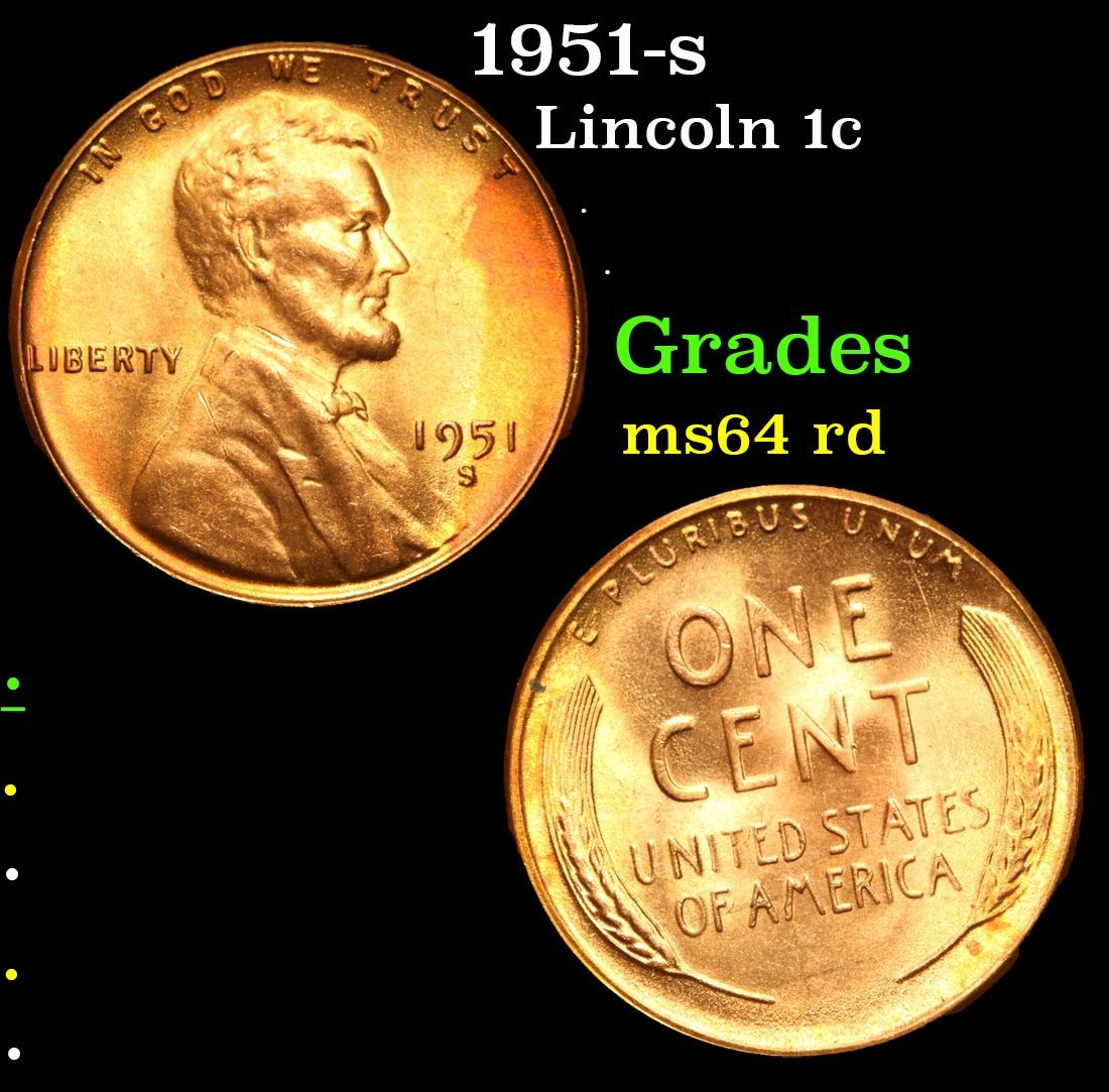 1951-s . . Lincoln Cent 1c Grades Choice Unc RD.