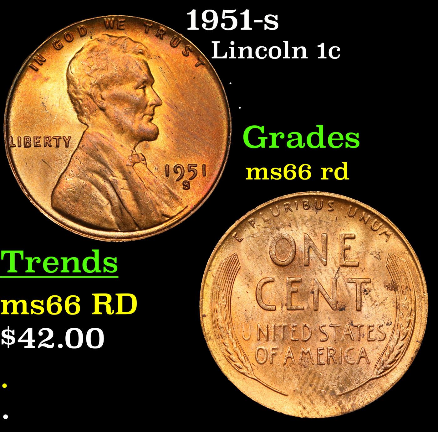 1951-s Lincoln Cent 1c Grades GEM+ Unc RD.