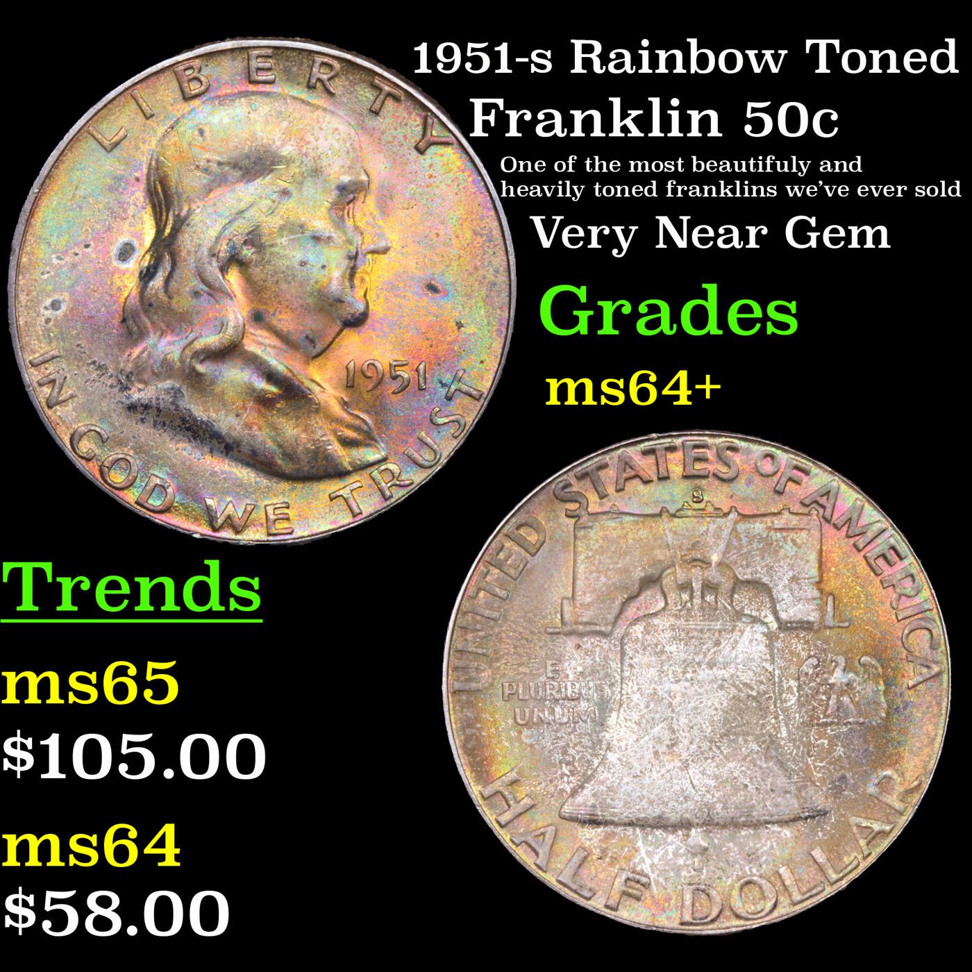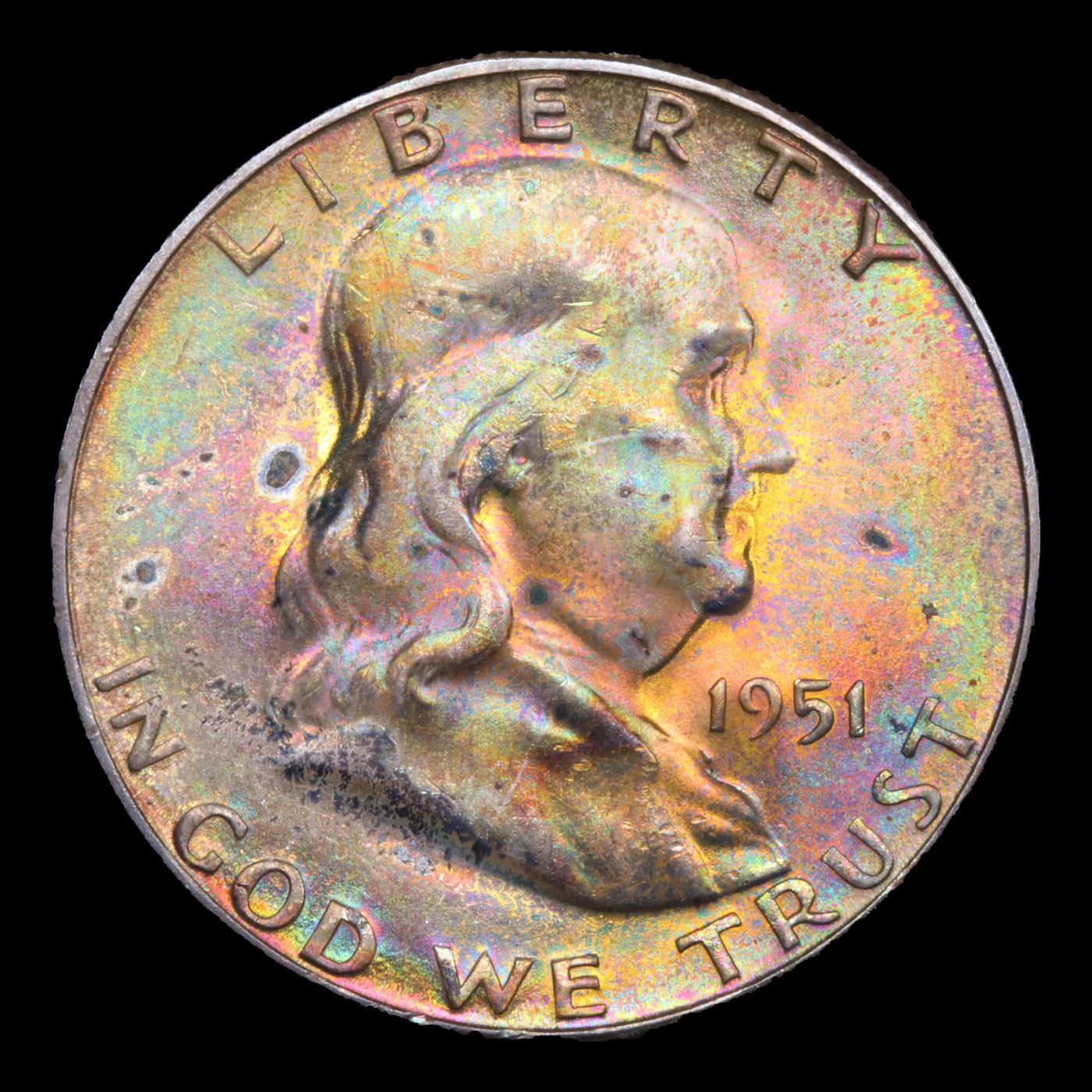 1951-s Rainbow Toned Franklin Half Dollar 50c Grades Choice+ Unc. A Corey's Pick