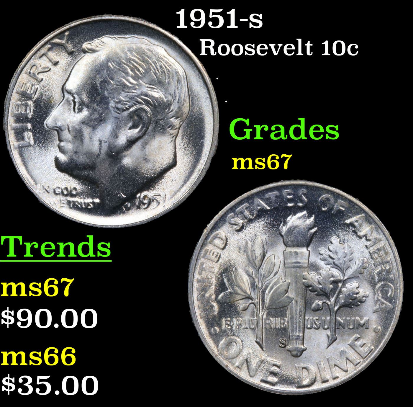 1951-s Roosevelt Dime 10c Grades GEM++ Unc.