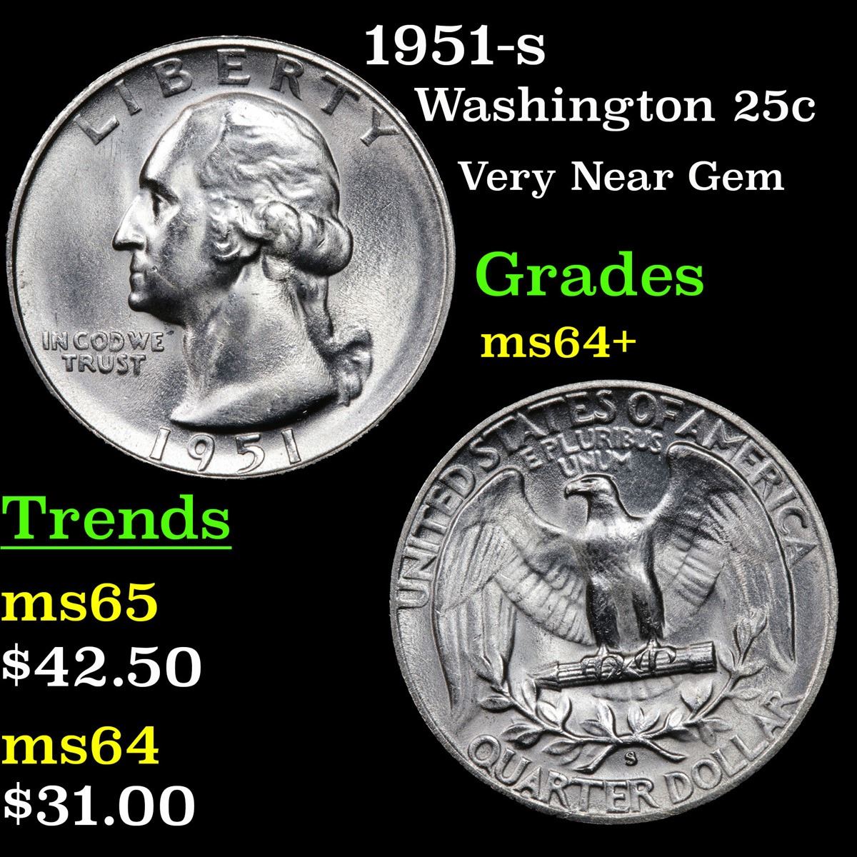 1951-s . Very Near Gem Washington Quarter 25c Grades Choice+ Unc.