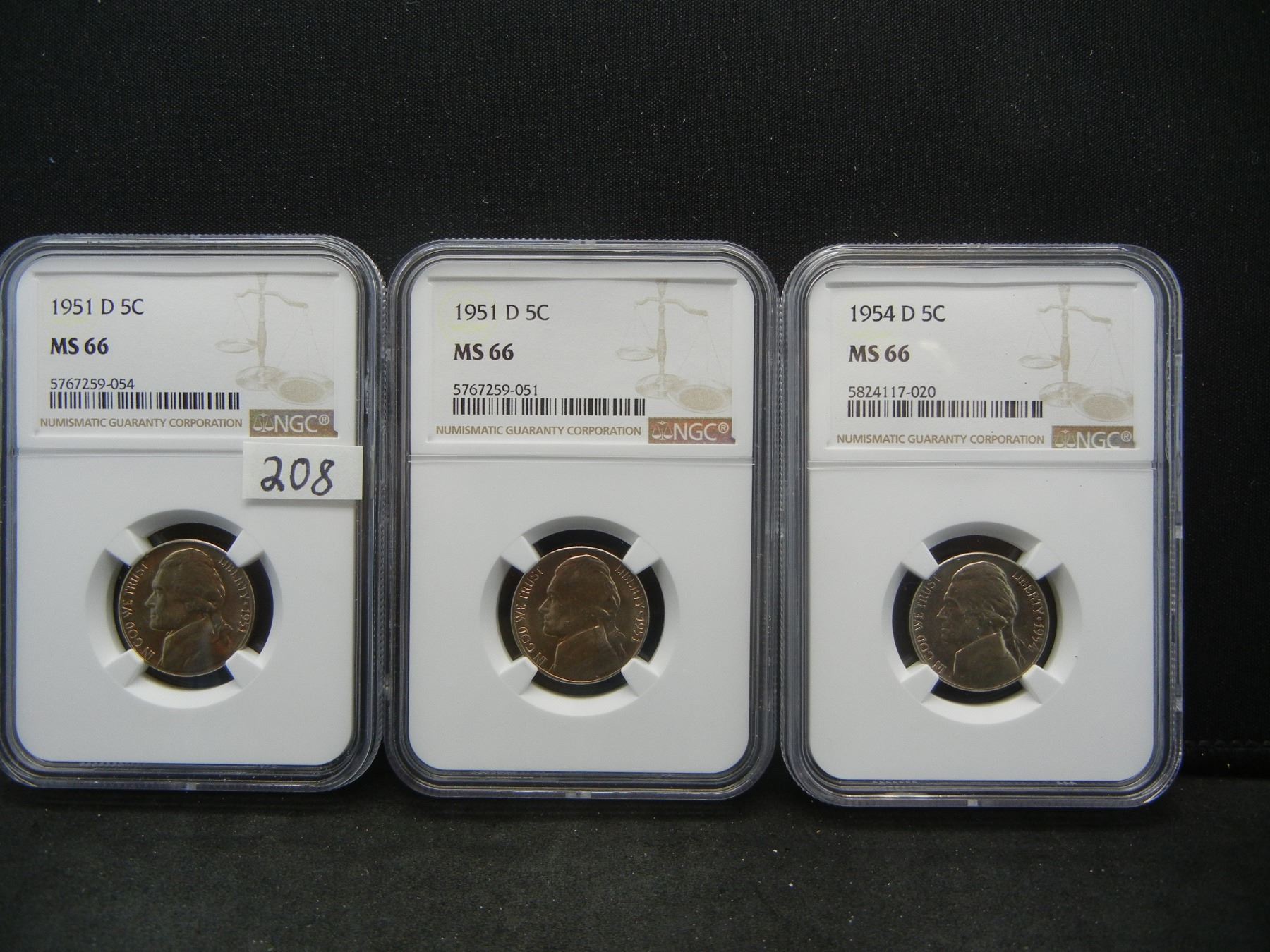 1951D+54D Jeferson Nickels NGC MS66 Better Dates