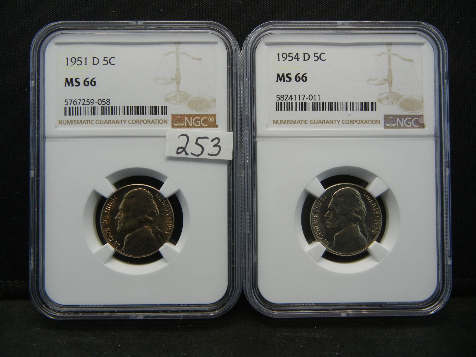 1951D+54D Jeferson Nickels NGC MS66 Better Dates