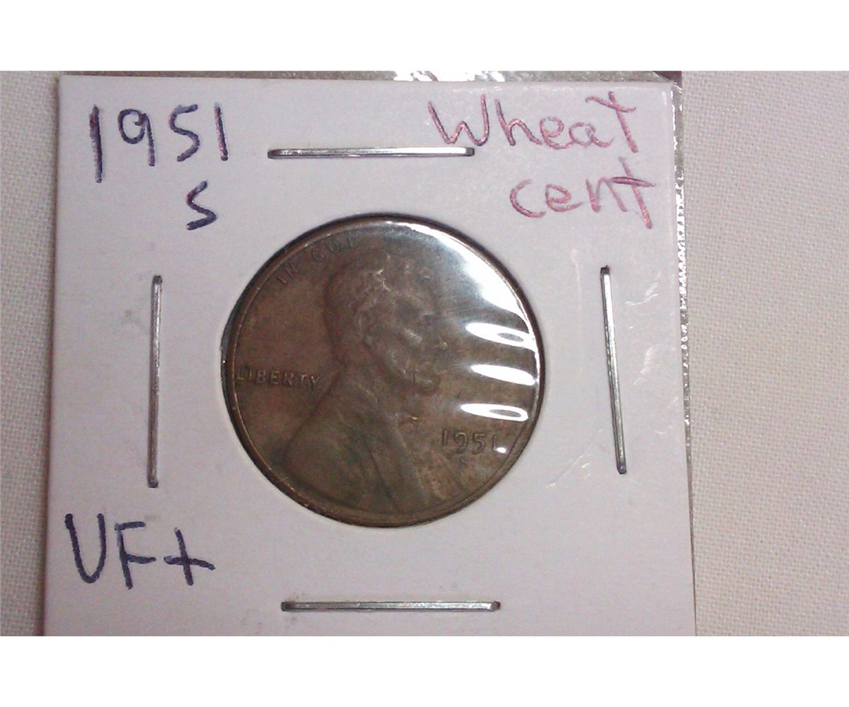 1951S VF+ Wheat Cent ***Coin, Currency & All Items Listed in this auction - Grades, Conditions and Values are not Safe Deposit Coins LLC Responsibilty. Grades, Condition and Values are determined by Consigner(s) & Buyers ONLY***