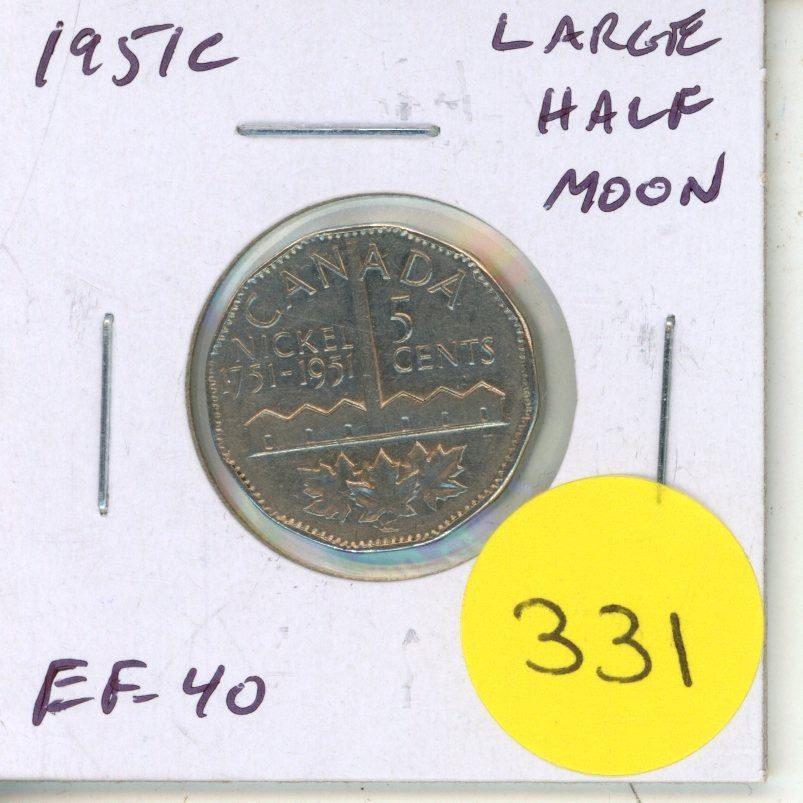 1951c Nickel 5 Cents with Large Half Moon from Die Clash. EF-40.