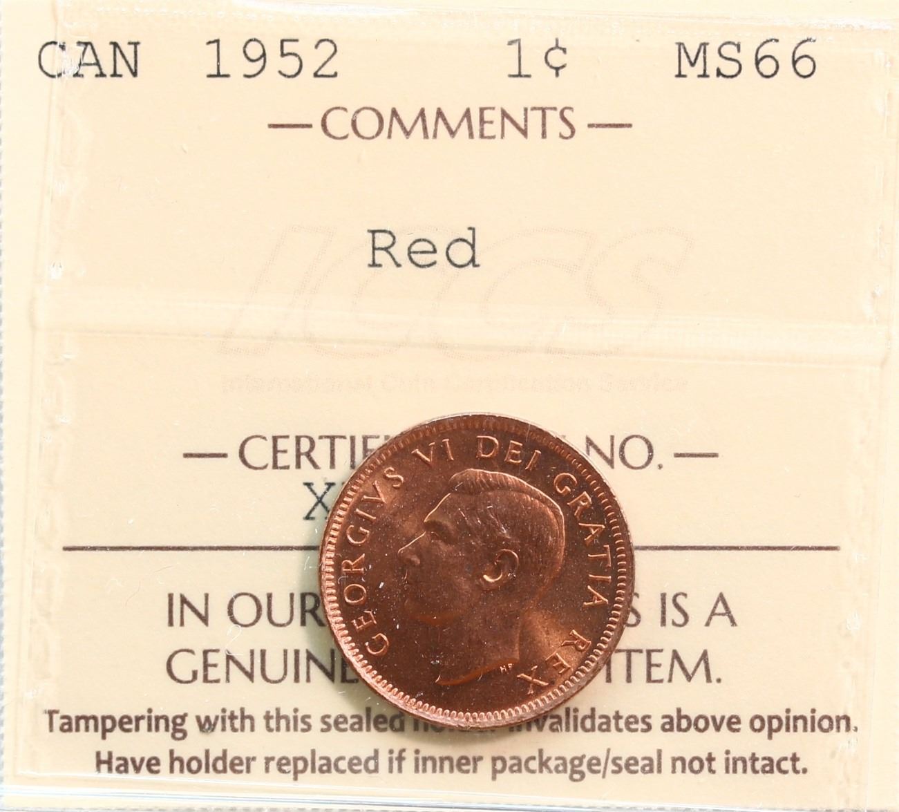1952 1¢ ICCS Superb Gem Mint State-66 Full Red
