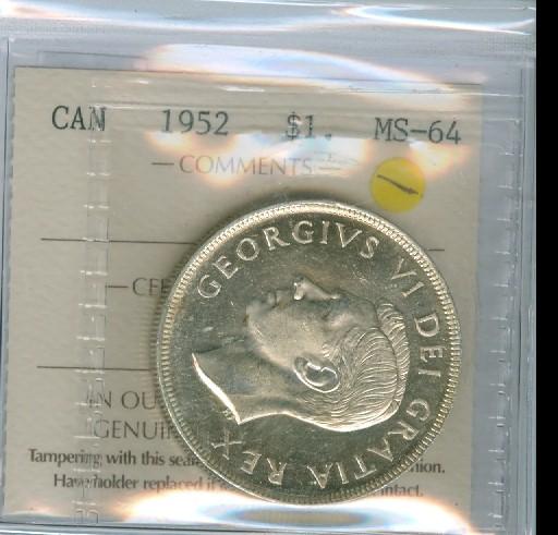 1952 $1 NWL ICCS MS64. White with a light cameo finish but with no cameo designation.