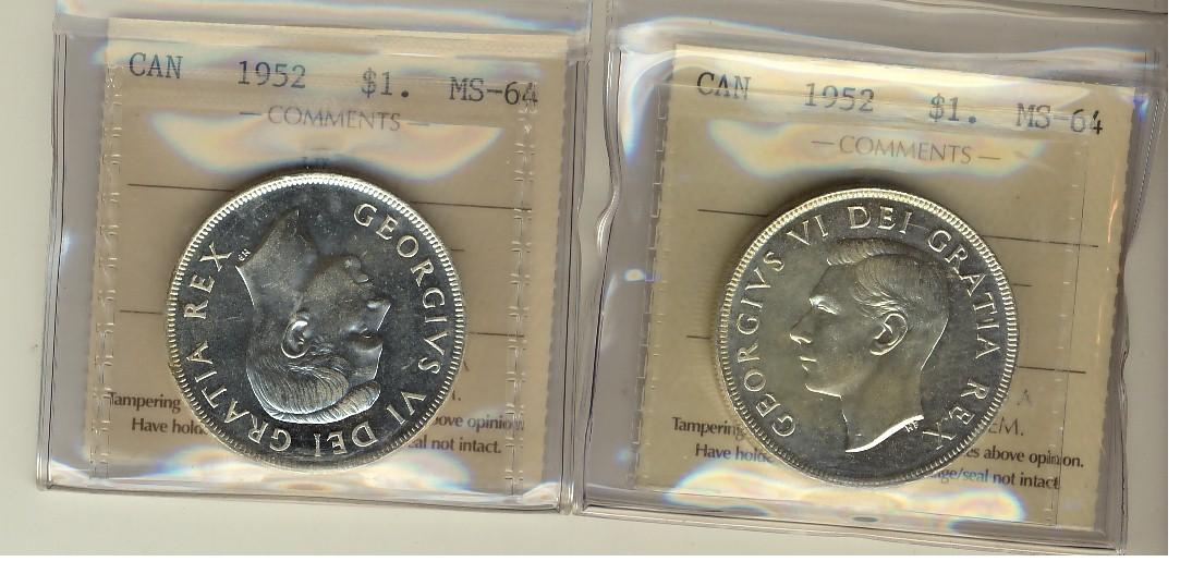 1952 $1 NWL & WL ICCS MS64. Lot of 2 coins.