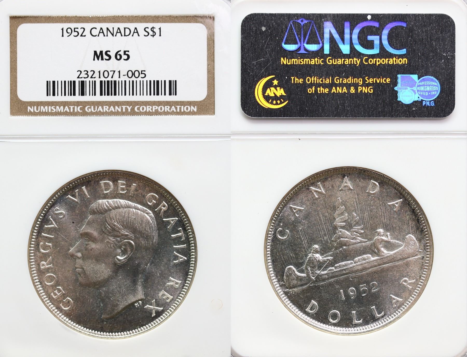 The cataloguer has taken every reasonable measure to ensure that all of the lots in this sale are as described and genuine. All raw coins and banknotes have been graded by the cataloger or the auction house which represent our best professional opinion. To grade coins and banknotes, we use Canadian grading standards, 42 years of experience and good conscience. However, grading is a subjective description in the opinion of the cataloger or the auction house. Among experts there are often differences of opinion on the grading and the eye appeal of a coin. The strike and the state of preservation are often debated. The Canadian Numismatic Company acts as an agent between consignors and buyers. The Canadian Numismatic Company does not guarantee that any coin or banknote cataloged will meet the standards, or the grade, of any third party grading companies. No warranty, whether impressed or implied. Items are as is, no warranty given. We cannot accept responsibility and waive all liability resulting in financial losses, and or incidentals accruing from the sale of any items, nor can we guarantee that items graded by third party services will grade the same if submitted to a different grading service or re-submitted to the same company. Statements by The Canadian Numismatic Company regarding the condition, the eye appeal, the strike and the population of items are for guidance only. All lots offered are sold "AS IS". Title to all lots remains with the auction house until paid for in full by the purchaser. But they are held at the risk of the purchaser once the time of the sale.