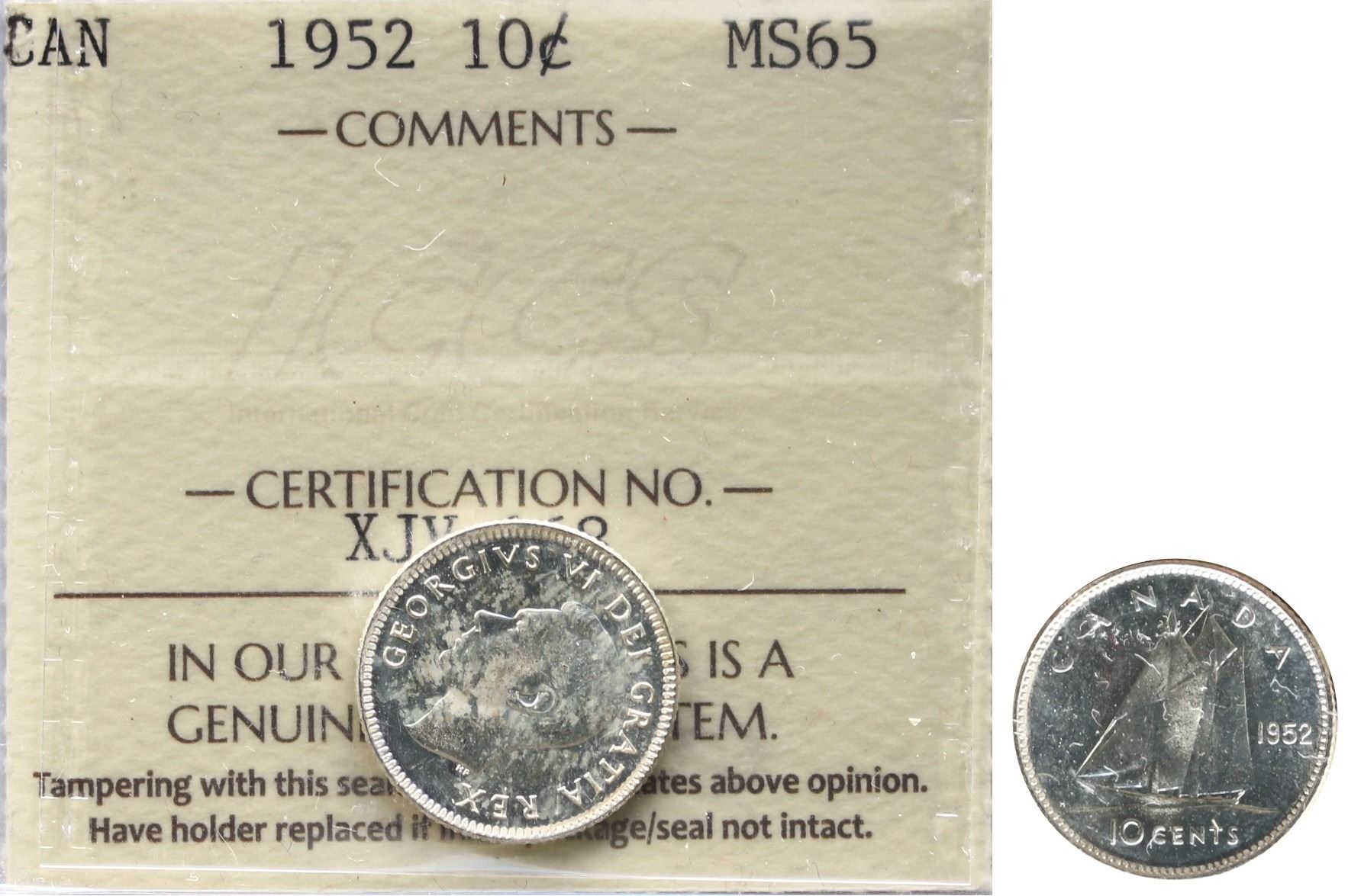 1952 10¢ ICCS Gem Mint State-65