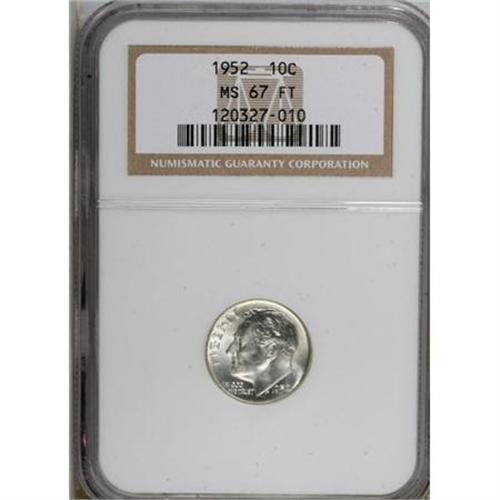<B>1952 10C MS67 Full Torch NGC.</B></I> Delicate freckles of sun-gold grace this exactingly struck and exquisitely preserved Superb Gem. Exemplary quality for this Ike election date. Census: 21 in 67 Full Torch, 0 finer (9/07).<BR><BR><B>Coin Engraver:</B> John R. Sinnock<BR><BR><b>Shipping:</b> Coins & Currency (<a target="_blank" href="http://www.heritageauctions.com/common/shipping.php">view shipping information</a>)