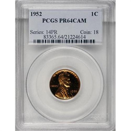 <B>1952 1C PR64 Cameo PCGS.</B></I> PCGS Population (17/77). NGC Census: (0/0). (#83365)<BR><BR><b>Shipping:</b> Coins & Currency (<a target="_blank" href="http://www.heritageauctions.com/common/shipping.php">view shipping information</a>)