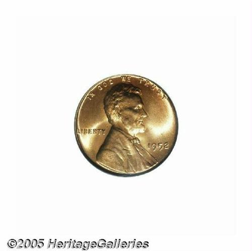 <B>1952<1C> MS67 Red PCGS.</B></I> Bright, even color, the surfaces display just a hint of silvery-white, on the lower reverse, intermixed with the original red, that gives this piece a distinctive appearance. Sharply defined and, as one would expect, nearly defect-free. A very scarce example in such a superior grade. Population: 8 in 67 Red, 0 finer (6/05).<BR><I>From The William Bickel Collection, Part One.</B></I>