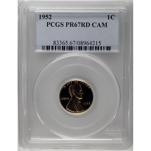 <B>1952<1C> PR67 Red Cameo PCGS.</B></I> This cherry-red Superb Gem boasts immensely reflective fields and beautifully frosted devices. Fully struck and immaculately preserved. Population: 13 in 67 Cameo, 1 finer (6/06).