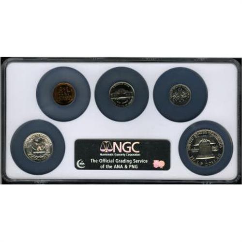 <B>1952 Proof Set Proof Set NGC. </B></I> This Set includes: <B>1952 1C PR64 Red and Brown ; 1952 5C PR66; 1952 10C PR64; 1952 25C PR64 </B></I>and a <B>1952 50C PR65 NGC. </B></I><BR><BR><B>Coin Engraver:</B> Victor D. Brenner<BR><BR><b>Shipping:</b> Coins & Currency (<a target="_blank" href="http://www.heritageauctions.com/common/shipping.php">view shipping information</a>)