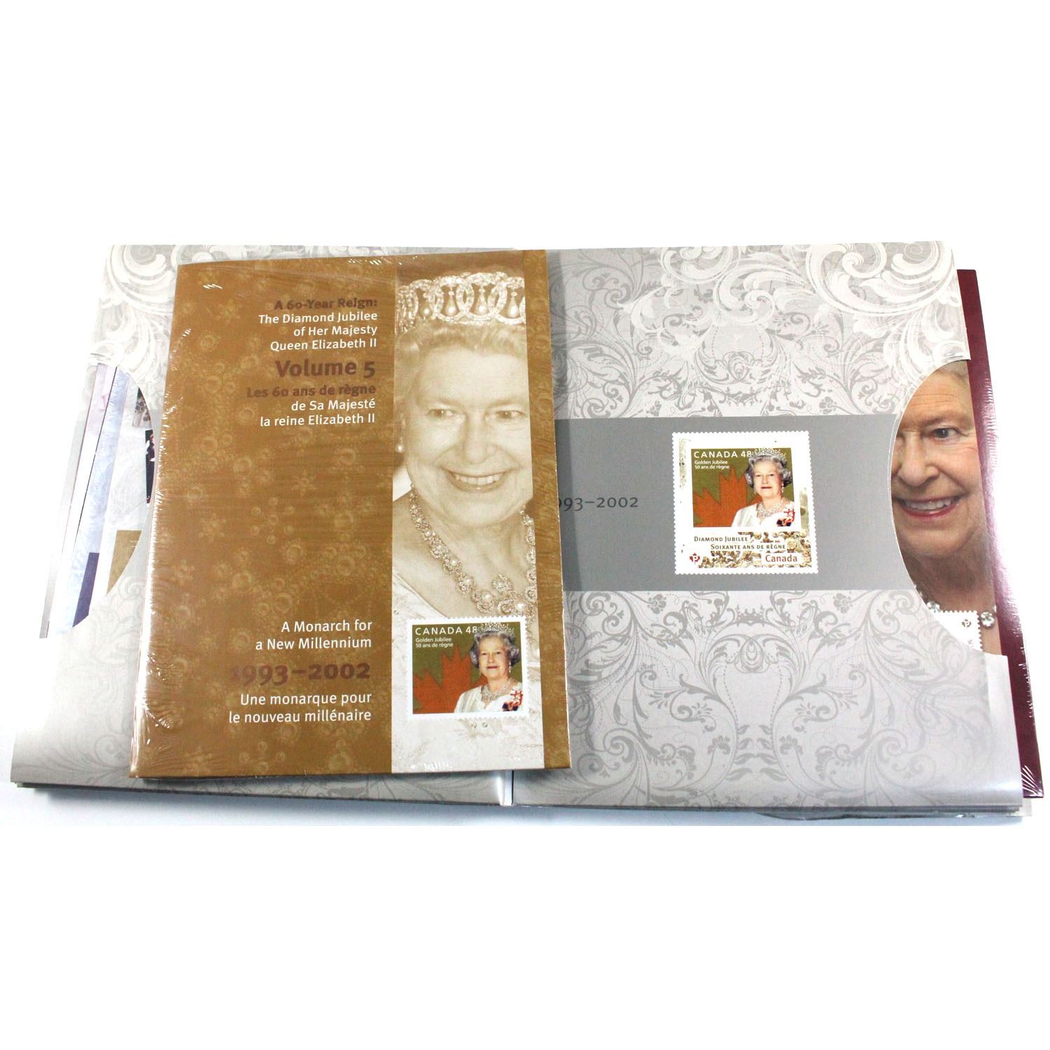1952-2012 Queen Elizabeth II Diamond Jubilee complete Regal Collection. keepsake folders showcases a 10-year period in Queen Elizabeth II's 60-year reign, and includes A fact-filled booklet that recounts Royal Visits and other milestones, A mini-pane of four stamps and A postage-paid postcard depicting all Queen Elizabeth II stamps issued during those 10 years, including a BONUS Royal Wedding Keepsake.