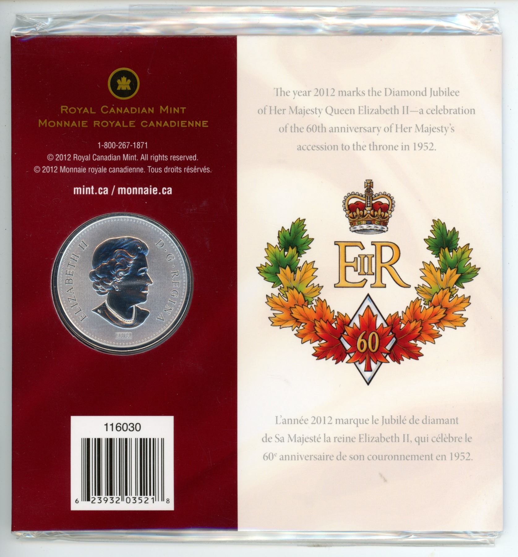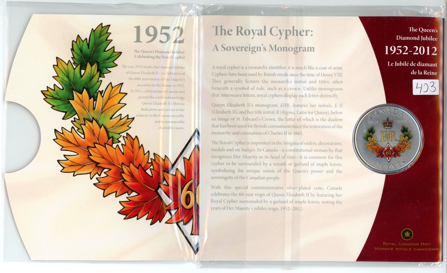 1952 -2012 The Queen’s Diamond Jubilee 50 Cents. Colourized. Specimen. Housed in its original RCM folder of issue.