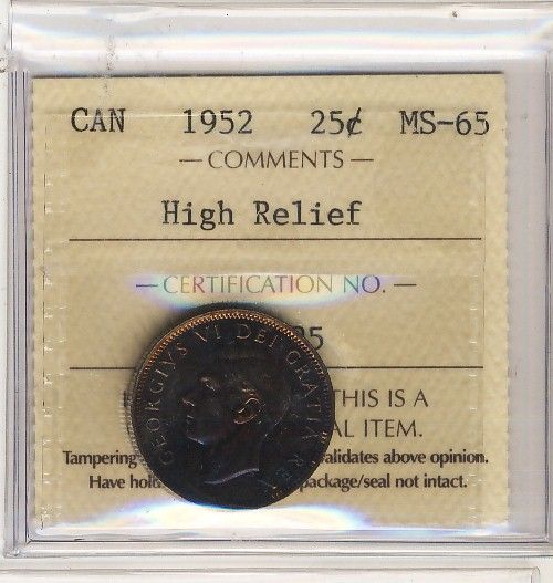 1952 25¢ HR ICCS MS65. Rare for grade.