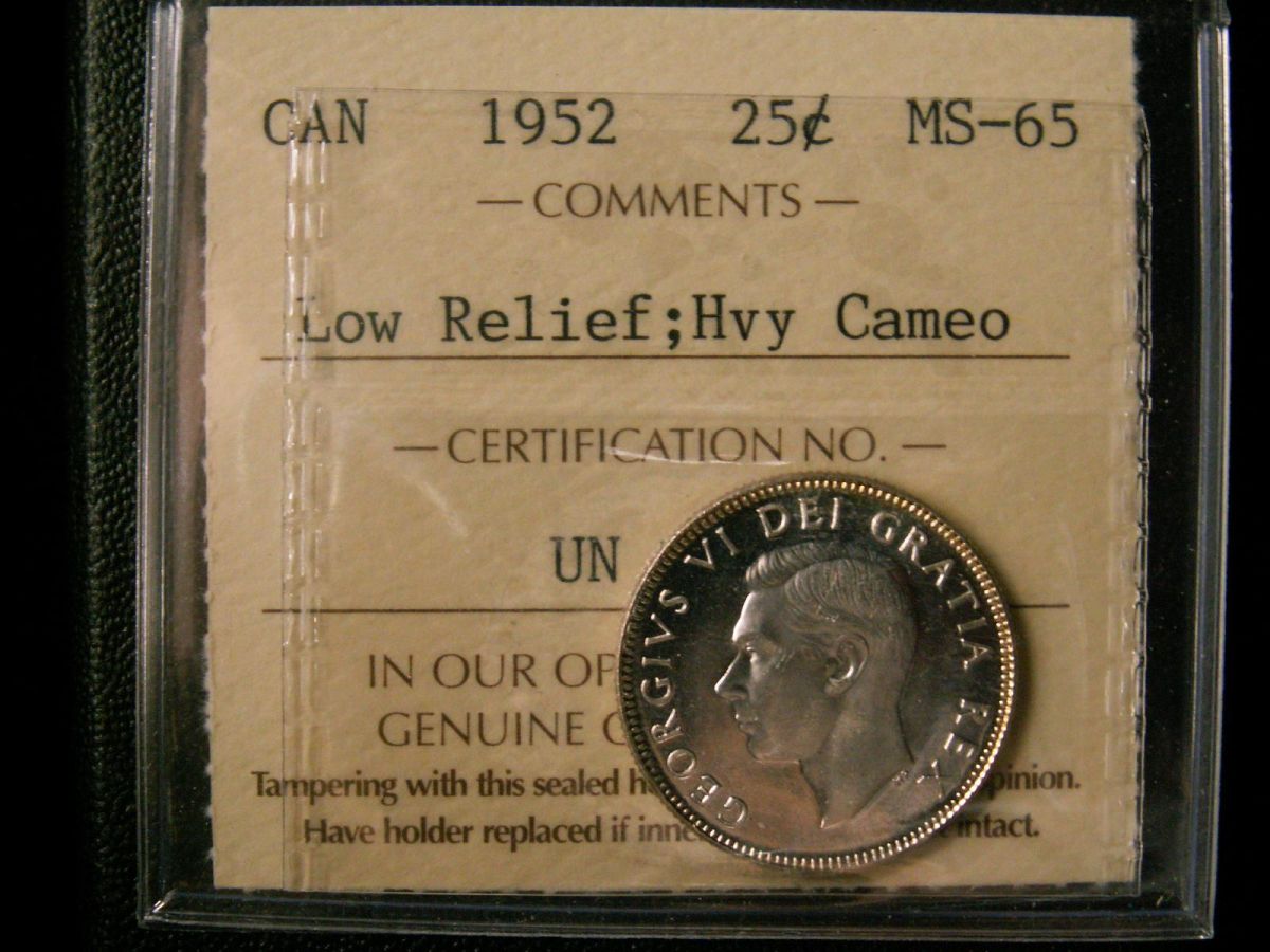 1952 25¢ Low Relief ICCS MS65 Heavy Cameo. Blast white .