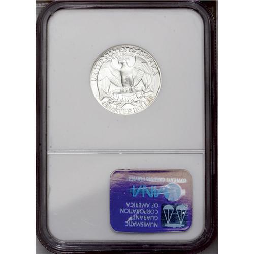 <B>1952<25C> Superbird PR67 Cameo NGC.</B></I> A tiny, faint, partial S on the eagle's breast may constitute a hidden signature by an obscure mint worker. Engravers typically touched up proof quarter dies in the fifties to improve feather definition. A brilliant Superb Gem with particularly good cameo contrast on the reverse.<BR><I>From The Houston Collection of Washington Quarters.</B></I>