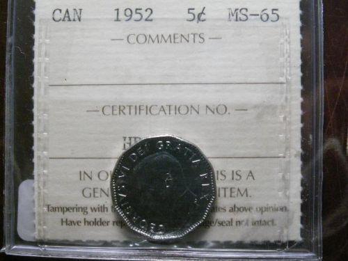 1952 5¢ ICCS MS65. Fully struck with full luster. A true "Gem"