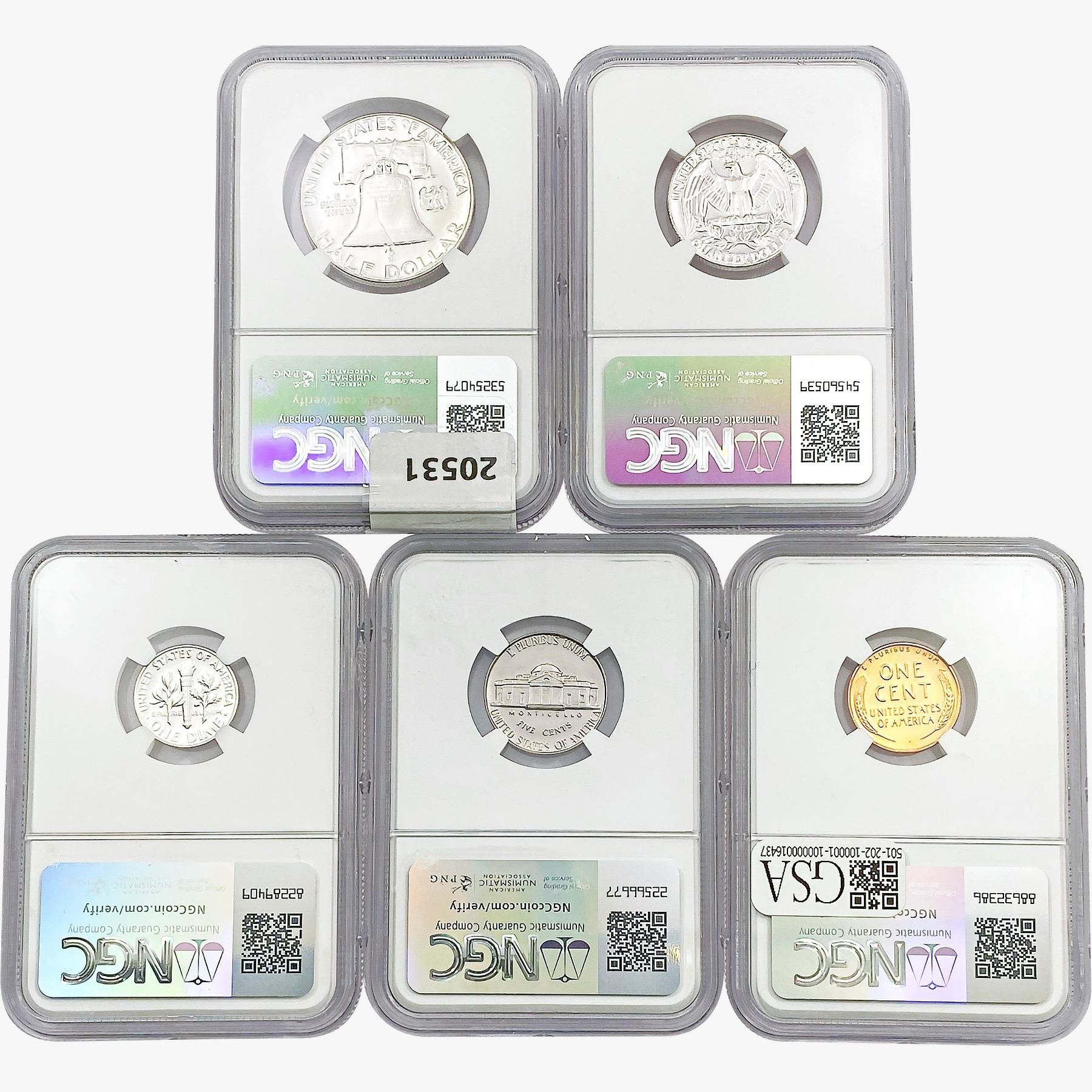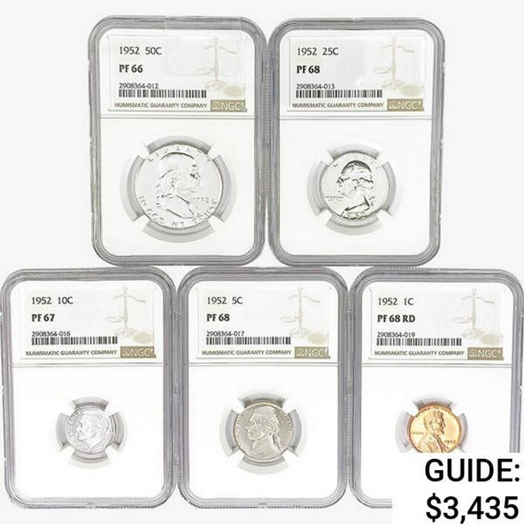 1952 [5] US Proof Set [1C-50C] NGC PF66-68