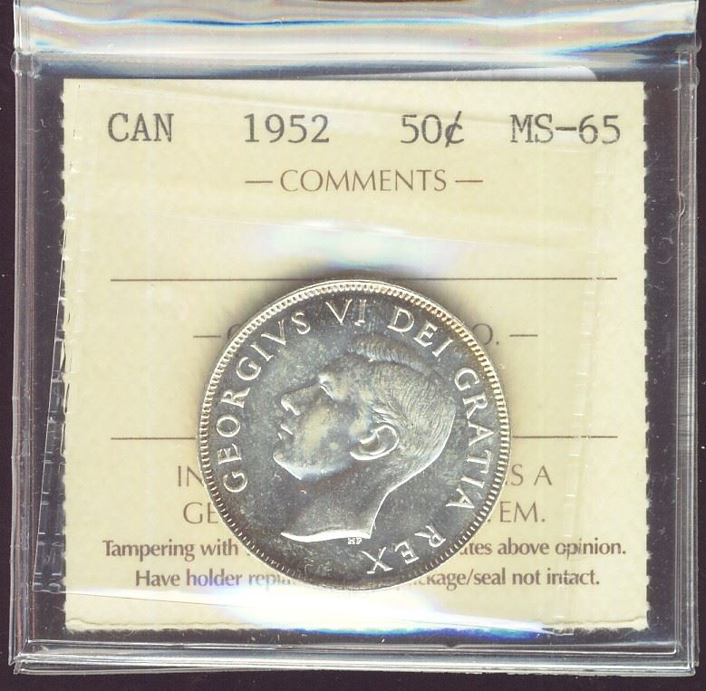 1952 50¢ ICCS MS65. Full lustre and mirror like fields.