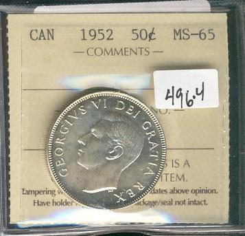 1952 50¢ ICCS MS65. Touch of pink shade.