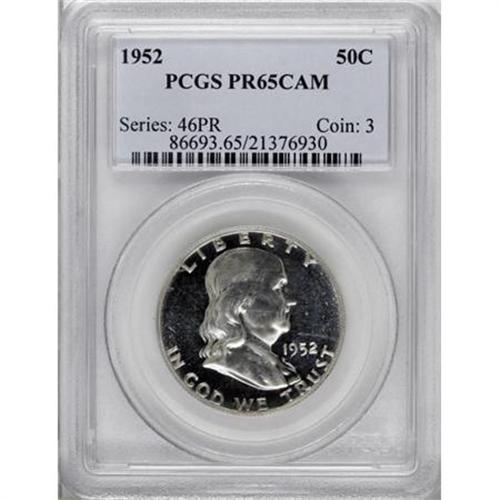 <B>1952 50C PR65 Cameo PCGS.</B></I> PCGS Population (73/110). NGC Census: (175/235). Numismedia Wsl. Price for NGC/PCGS coin in PR65: $375. (#86693)<BR><BR><b>Shipping:</b> Coins & Currency (<a target="_blank" href="http://www.heritageauctions.com/common/shipping.php">view shipping information</a>)