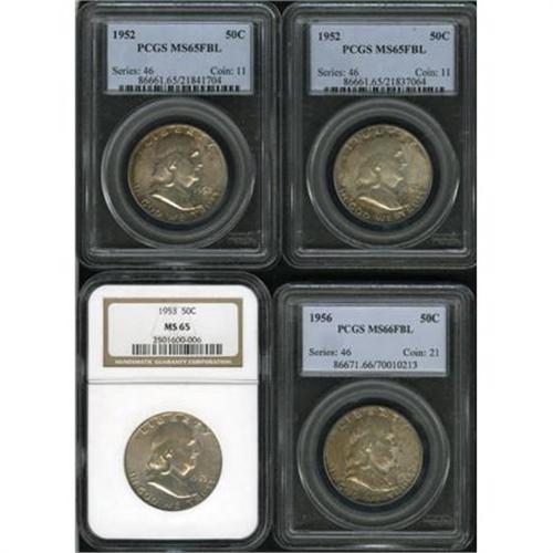 <B>(2)1952 50C MS65 Full Bell Lines PCGS; 1953 MS65 NGC</B></I> and a <B>1956 MS66 Full Bell Lines PCGS.</B></I><BR><BR><b>Shipping:</b> Coin/Currency (<a target="_blank" href="http://www.heritageauctions.com/common/shipping.php">view shipping information</a>)