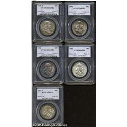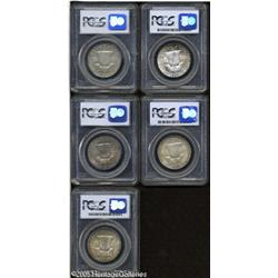 <B>1952 50C MS66 Full Bell Lines PCGS; 1956 MS66 Full Bell Lines PCGS; 1957-D MS66 Full Bell Lines PCGS; 1958 MS66 Full Bell Lines PCGS;</B></I> and a <B>1958-D MS66 Full Bell Lines PCGS,</B></I> the '52 is lightly toned, the '56, '57-D, and '58-D features mottled golden-brown, olive, and light green patina, and the '58 displays sky-blue, olive, and faded crimson coloration.<BR><I>From The Mike Jacobson Collection.</B></I> 5 Coins Lot:8260