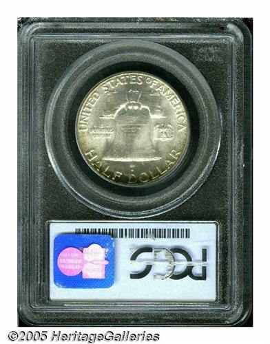 <B>1952<50C> MS66 Full Bell Lines PCGS.</B></I> The central areas are essentially white, and are framed by touches of olive-brown around portions of the peripheries. The design features are well impressed, with sharp definition on the bell lettering, in addition to the full lines. There are no significant marks noted on the lustrous surfaces. PCGS has seen just six pieces finer (3/05).