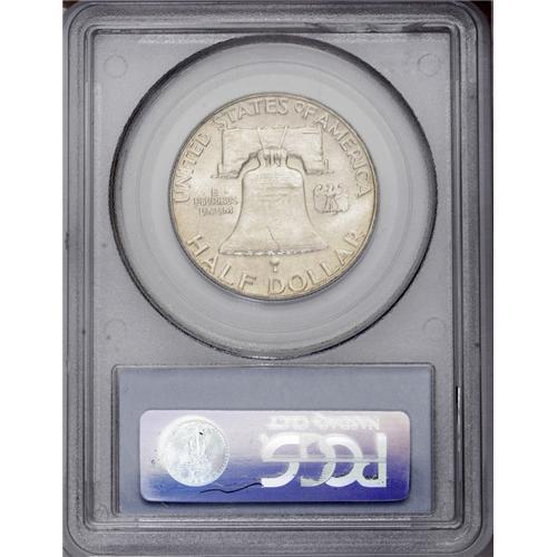 <B>1952<50C> MS66 Full Bell Lines PCGS.</B></I> The well executed strike transcends the Full Bell Lines to include clarity on most of the bell lettering. The reverse shows whispers of light gold-tan patina, while the obverse displays slightly deeper tones of the same coloration that is accented by peripheral reddish-brown, crimson, and aquamarine. A few hardly noticeable, trivial marks on the central devices are mentioned solely for accuracy. PCGS has seen only six finer examples (1/06).