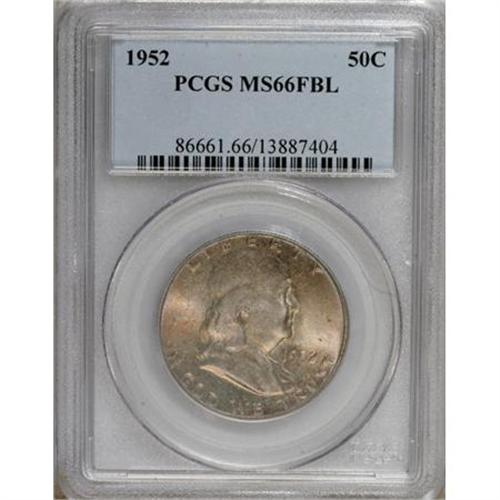 <B>1952 50C MS66 Full Bell Lines PCGS.</B></I> This sharply struck Premium Gem has attractive lilac, gold, and sea-green toning on both sides. Population: 210 in 66, 6 finer (6/07).<BR><BR><b>Shipping:</b> Coins & Currency (<a target="_blank" href="http://www.heritageauctions.com/common/shipping.php">view shipping information</a>)