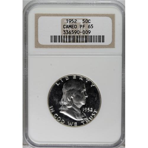 <B>1952 50C PR65 Cameo NGC.</B></I> NGC Census: (172/224). PCGS Population (67/96). Numismedia Wsl. Price: $550. (#86693)<BR><BR><b>Shipping:</b> Coins & Currency (<a target="_blank" href="http://www.heritageauctions.com/common/shipping.php">view shipping information</a>)