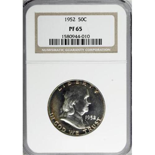 <B>1952 50C PR65 NGC.</B></I> NGC Census: (452/775). PCGS Population (945/581). Mintage: 81,980. Numismedia Wsl. Price for NGC/PCGS coin in PR65: $200. (#6693)<BR><BR><B>Coin Engraver:</B> John R. Sinnock<BR><BR><b>Shipping:</b> Coins & Currency (<a target="_blank" href="http://www.heritageauctions.com/common/shipping.php">view shipping information</a>\)