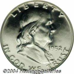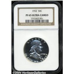 <B>1952<50C> PR65 Ultra Cameo NGC.</B></I> Outstanding contrast between the frosty devices and the mirrored fields provides imposing eye appeal. This untoned and carefully preserved Gem is exquisitely struck. <BR><BR><B>Important notice:</B> Heritage usually auctions material at the rate of 200-250 lots per hour. On some occasions eBay Live bid software or the Internet may not be able to keep up with the pace of the auction. We recommend placing a realistic absentee bid now as insurance to avoid disappointment. Occasionally the auctioneer may eliminate or reject an eBay Live bid, and the auctioneer may also reopen a lot after the close of the eBay live bidding (usually because we missed an audience bid), and may reject your bid even if it shows you as the winning bidder. By bidding via eBay Live, you agree that Heritage may award the lot to another bidder at its sole discretion under the circumstances described above or any other reasonable circumstances. Since eBay bids are not shown to us until we open the lot on the floor, we treat those bids just like floor bids. In most cases the floor responds before the eBay bid is presented to us, due to Internet lag time, so for consistency we have made it a policy that floor bids are always considered first over tie eBay live bids. Also please note that all Heritage lots purchased through eBay Live carry a 20% Buyer's Premium. Please make sure you read the Terms and Conditions before you bid. </span></font></tr></table></td></tr></table>