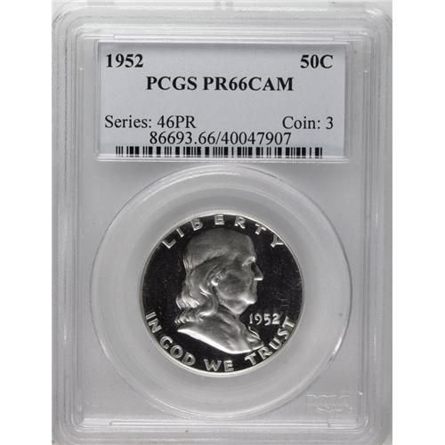 1952 50C PR66 Cameo PCGS. The early Franklin half proo