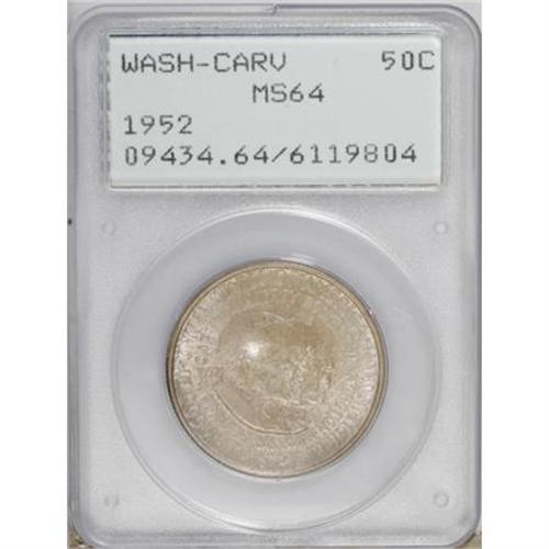 <B>1952 50C Washington-Carver MS64 PCGS.</B></I> PCGS Population (1602/1058). NGC Census: (1057/1312). Mintage: 2,006,292. Numismedia Wsl. Price for NGC/PCGS coin in MS64: $25. (#9434)<BR><BR><b>Shipping:</b> Coins & Currency (<a target="_blank" href="http://www.heritageauctions.com/common/shipping.php">view shipping information</a>)